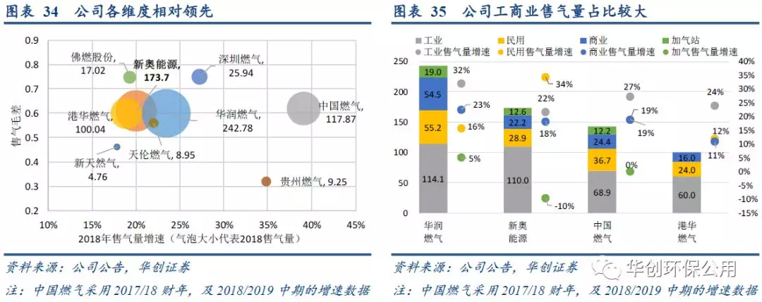 整体来看,城市燃气分销预计2019、2020年收入同比增长27%、19%至398亿、474亿元,2019年毛利率基本保持15.8%的稳定水平,2020年毛利率随工商业占比提升略增0.7pct至16.5%;加气站收入同比下滑7%、3%至26.4、25.7亿元。