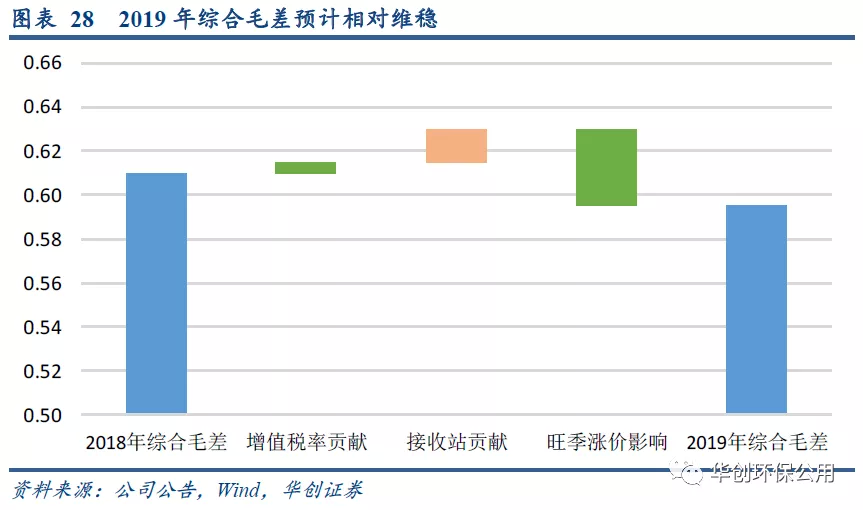 整体来看,公司2019年毛差较2018年相比,售气结构和毛差有望基本维稳。其中LNG接收站进口气对毛差带来正面影响0.015元/方;增值税率下调带来正面影响约0.005元/方;中石油旺季价格上涨带来负面影响约0.035元/方,我们预计公司2019年毛差同比微降0.015元/方,维持在0.60元/方左右的相对稳定水平。