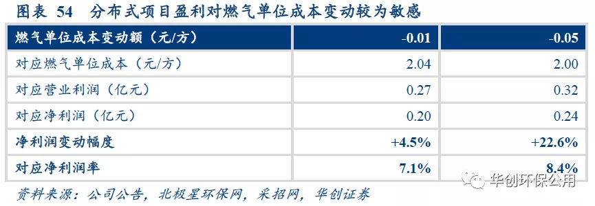 另外,通过模拟测算公司天然气分布式项目的收益以及气价-收益敏感性发现,在天然气分布式没有政府补贴的情况下,虽然需要较高的利用小时数和相对较高的售电/热价才能保障盈利,但单位燃气成本每下降0.01元/方,项目净利润显著提升超7%。考虑到2019年及未来燃气供需趋于宽松,未来用气成本大概率降低有望显著提升分布式的盈利能力,进而助增综合能源业务的收益体量。
