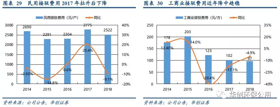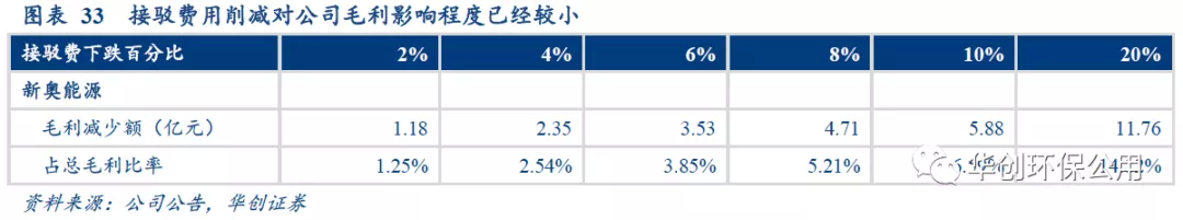 同时我们以2018年为基数,对接驳费用影响毛利的程度进行敏感性分析。假设其他收入不变,在现行约2500元每户的接驳费基础上,即使削减10%至2250左右的水平,公司整体毛利的影响也仅6.7%。