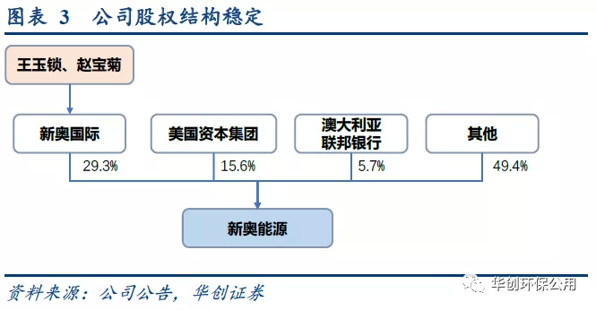 公司的最大股东为新奥国际,而新奥国际由实际控制人王玉锁、赵宝菊夫妇各占50%的股权。新奥国际近几年所持股权均保持在30%左右,股权结构相对稳定。