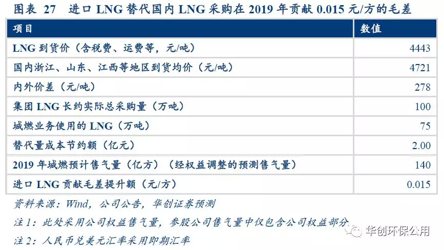 我们预计居民用气在煤改气以及全国高温等因素的拉动下,2019年售气量仍有望保持约12%的增长,而销售价格受民用气并轨后的基本完全顺价和增值税率下调影响,预计收入增速略高于售气量增速。预计2019年不含税毛差略升0.01元/方,2020年售气量增速略降至10%,而毛差预计民用气价格顺价完成,有望进一步上升约0.02元/方。