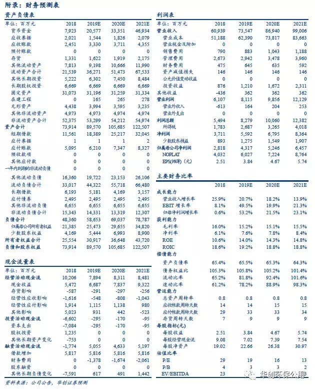 我们假设公司燃气具、批发等业务规模和盈利能力维持稳定,整体来看预计公司2019-2020年实现营业收入733亿、866亿,同比增长20.7%、18.2%;归母净利润同比增长53.2%、21.5%至43.2亿、52.5亿元;对应EBIT同比增长49.5%、19.9%;对应PE为19倍、15倍。
