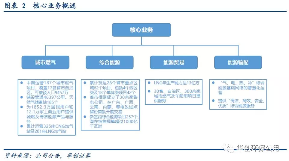 (2)天然气&液化天然气:既包括传统的天然气供应、配送、贸易、销售等业务,也包括新型燃气的使用,目前还融入了在天然气输送和储存领域的技术创新、生物沼气的开发以及储能制气等创新;