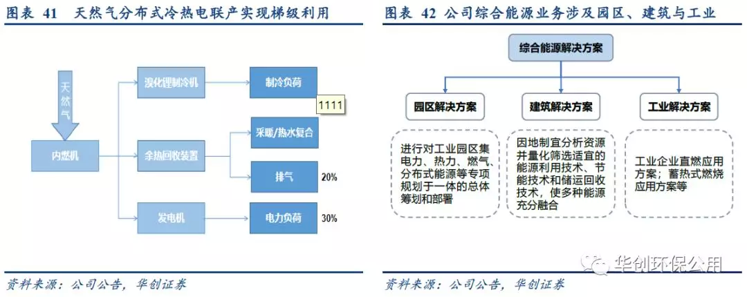 公司综合能源业务以天然气分布式为主,以因地制宜、清洁能源优先、多能互补的方式完成供能服务。其中天然气分布式相比传统的集中供能,具有小规模、模块化、分散式等特点,可独立地输出冷、热、电能的系统。由于传输距离短且采用梯次供能形式灵活,能量利用效率高于传统的单一集中式供能。
